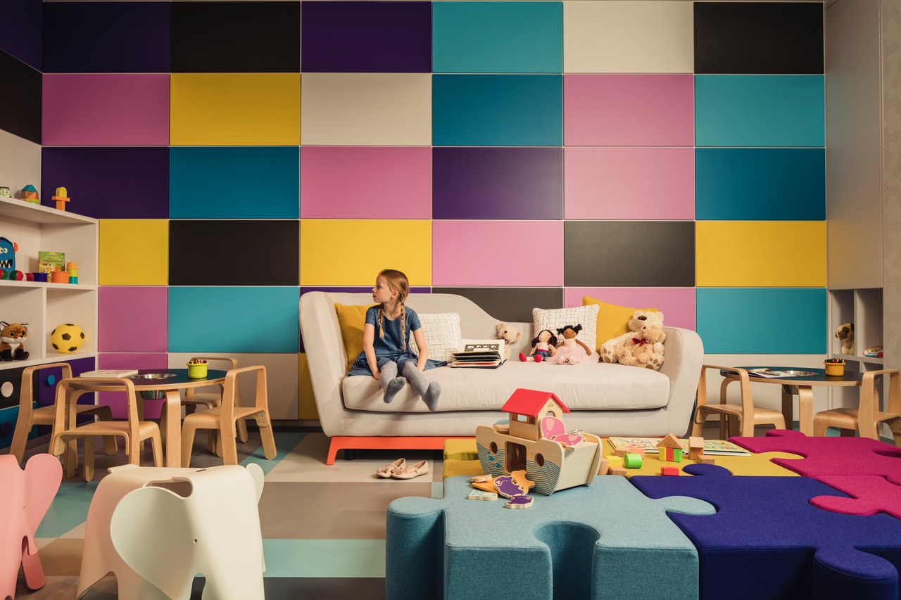 A climbing wall, brightly hued playroom and baby ballet are keeping children amused in cheery new schemes
